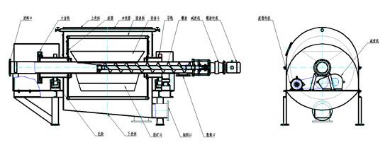 GTL系列料漿分級篩的布局如圖1所示,它首要由不銹鋼篩網、提渣板、沖刷水管、收渣斗、進漿排渣管、傳動機構和接礦斗構成。